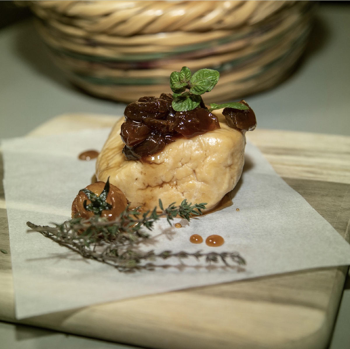 Baked goat Halloumi Cheese with mosphilo marmalade and Sesami seeds